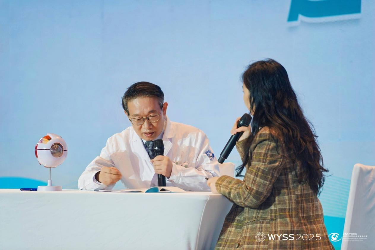决赛现场,代应山主任以视宁眼科临床诊疗中的典型青少年近视案例为切入点,打破传统科普的理论化表述模式。他将复杂的眼科学原理及近视防控专业知识,转化为通俗易懂的语言,围绕近视防控的关键环节、科学干预方法及家庭护眼注意事项等内容,进行深入浅出的讲解。其展示内容的专业性与传播性,赢得评委及现场观众的一致赞誉。