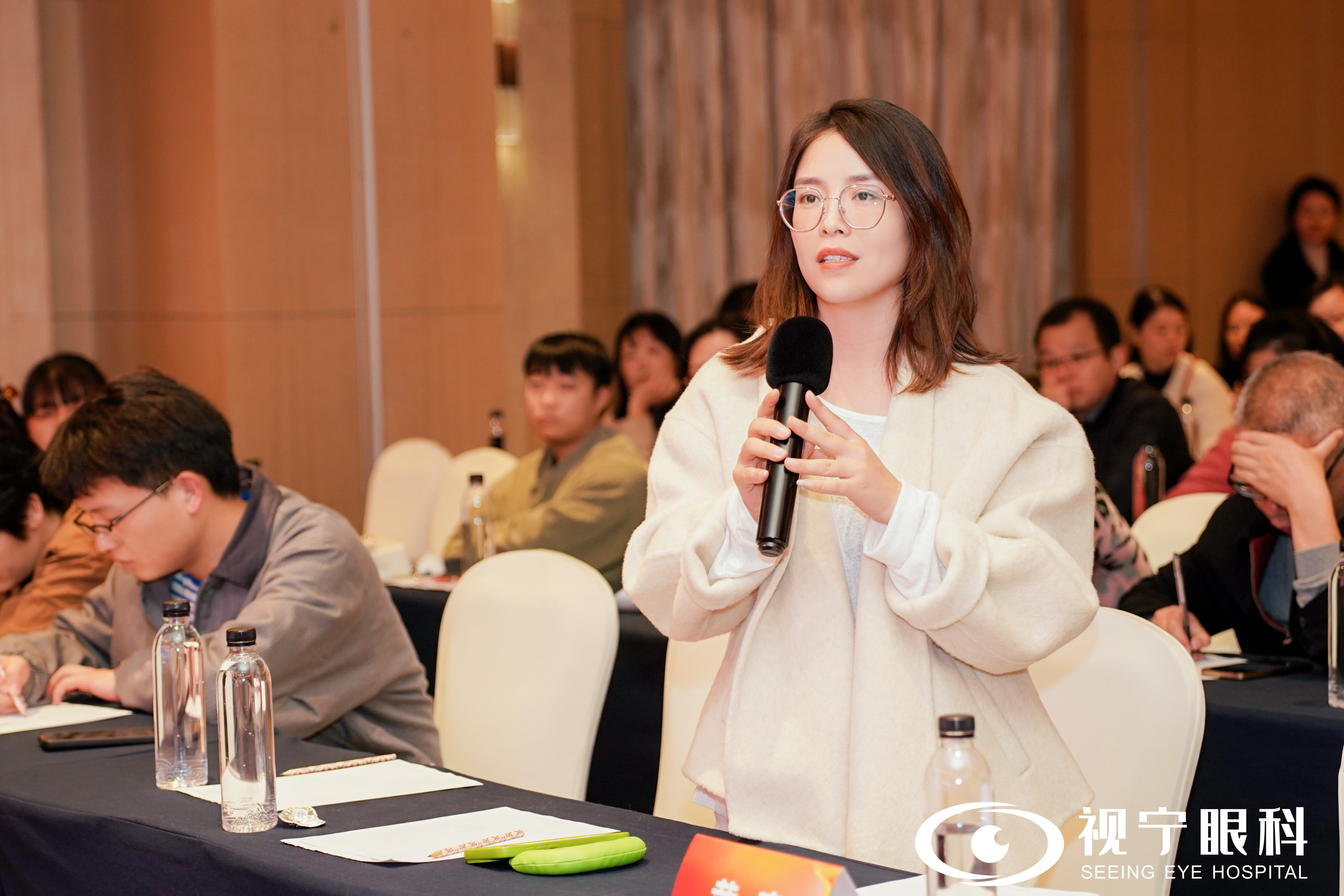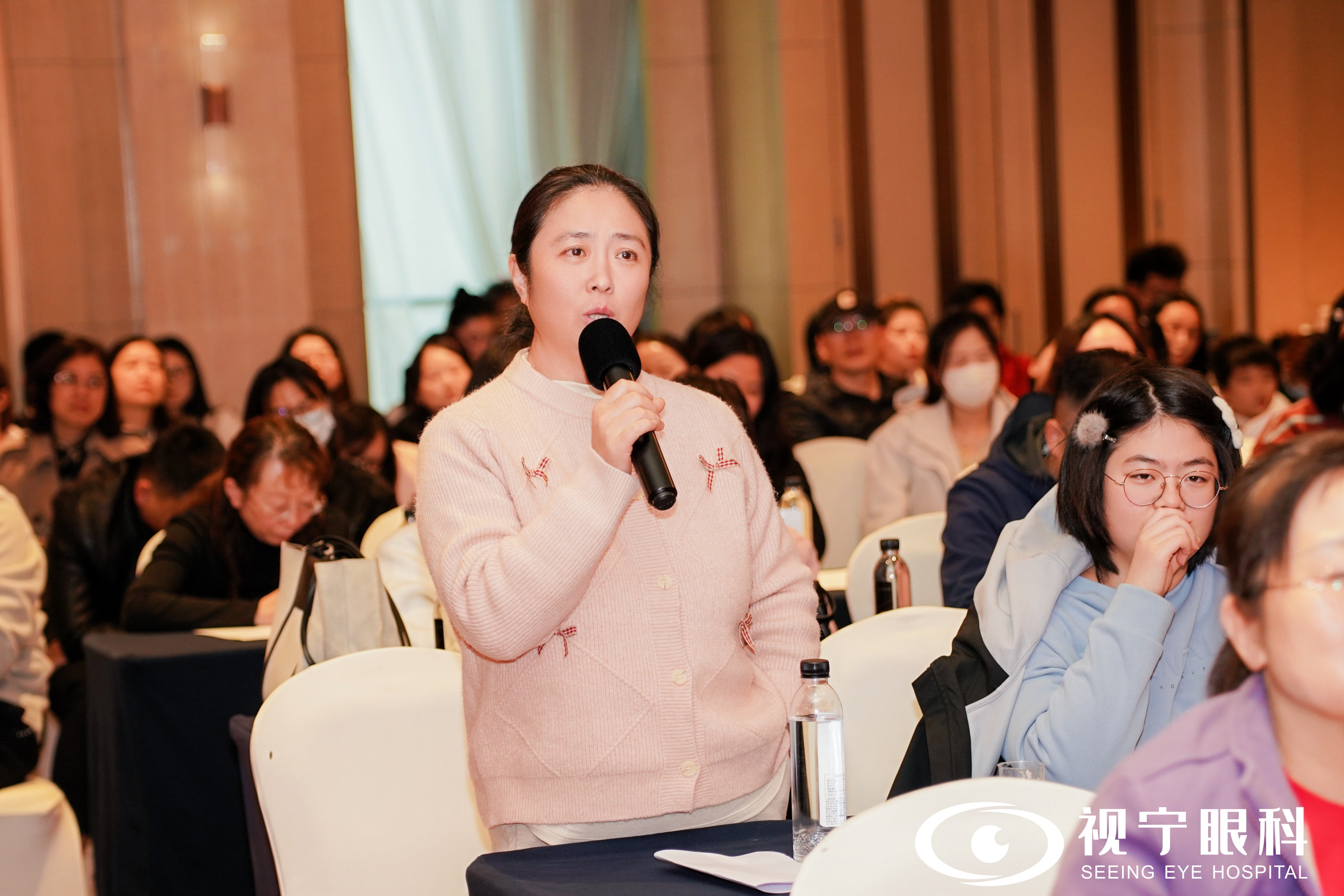 依托其二十余年眼科临床实践经验,视宁眼科执行院长黄亮带来《全飞秒近视矫正手术》专题分享。他围绕手术原理、适用人群及术后护理等关键内容进行了系统阐述,并就现场观众普遍关注的手术安全性、术后恢复等专业问题进行详尽解答