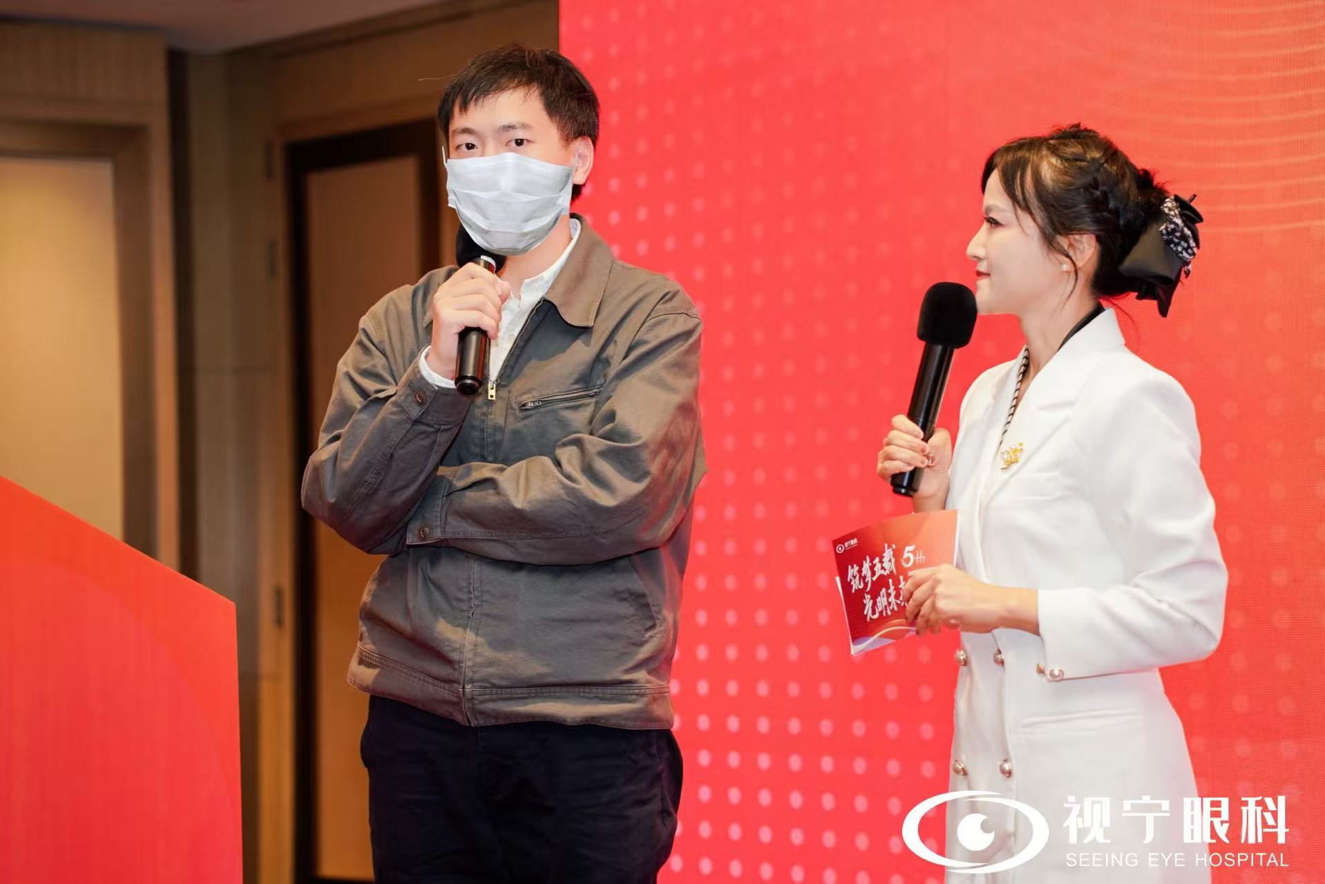 视宁眼科首席技术专家刘才远与患者代表陶医生,以医者及患者身份分享了各自摘镜体验。两位医疗专业人士通过亲身实践,不仅体现视宁眼科的技术实力,更有力提升了公众对近视手术的科学认知。