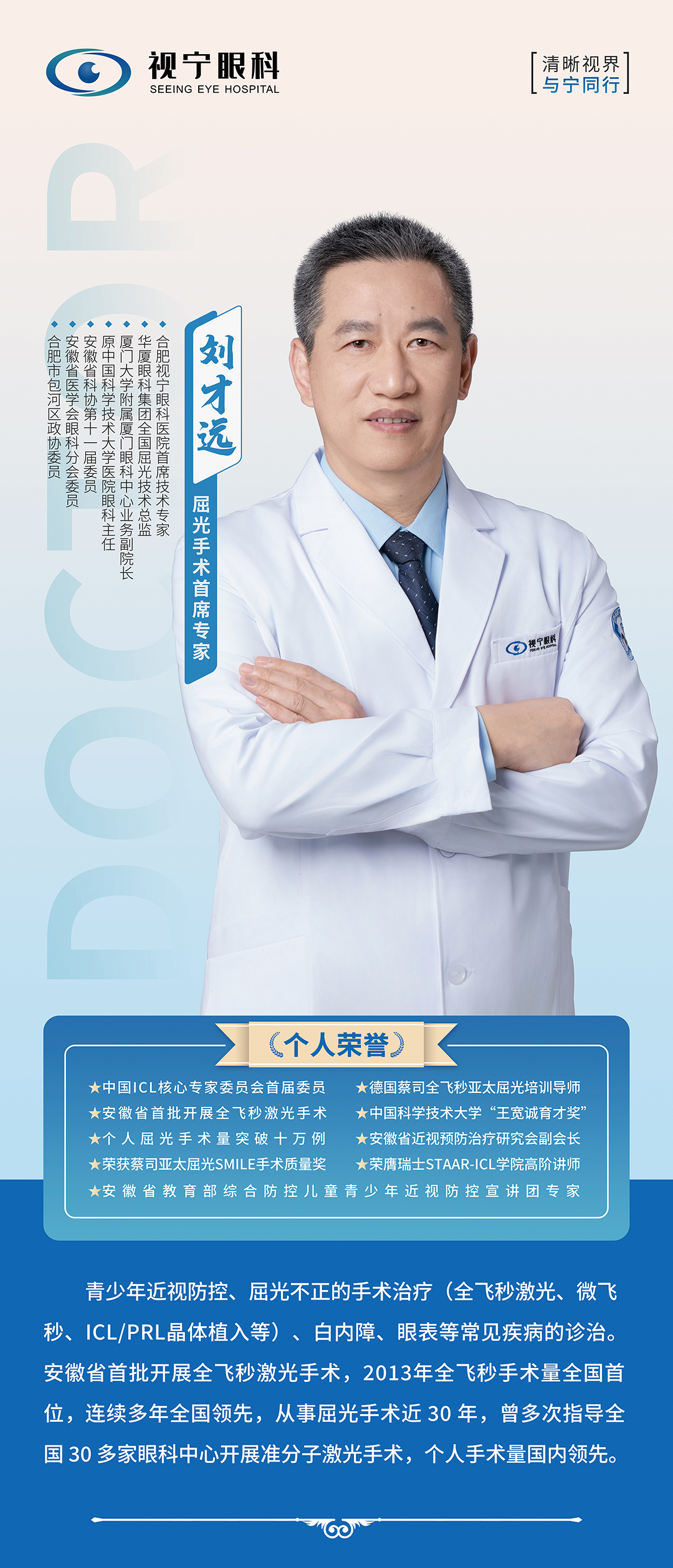 作为全国ICL核心专家委员会委员,刘才远院长深度参与了国内ICL临床诊疗规范的研讨与制定工作。从初代ICL产品的临床适配优化,到V4c晶体的推广应用,再到如今V5新一代晶体的落地实践,他始终站在技术迭代的前沿,将累计数万例的临床经验转化为学术成果。